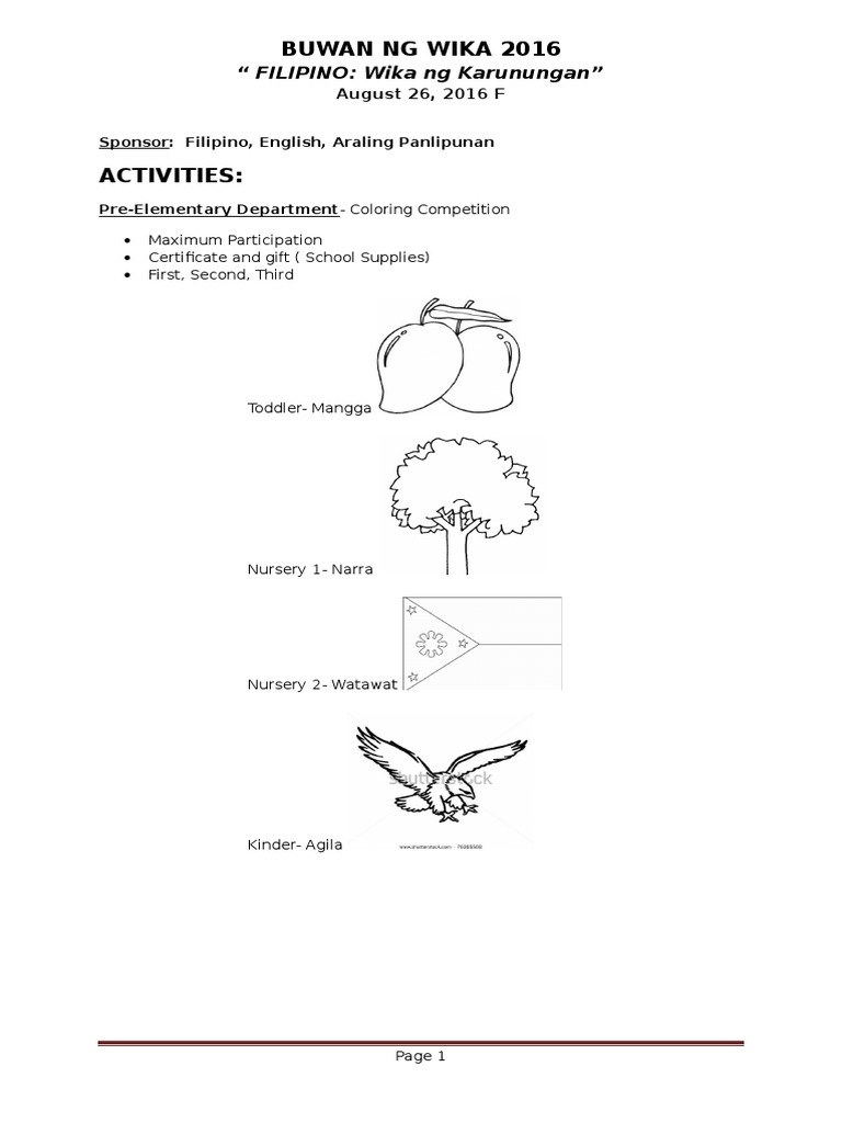 These pages are great for kindergarten and first grade students. Coloring activity for buwan ng wika. Some of the worksheets for this concept are coloring activity grades k 2. Children will practice tracing writing coloring the alphabet letters and numbers. Poster making buwan ng wika 2018. Nothing does it better than faber castell coloring pens.